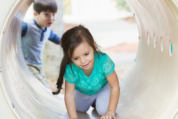 Play tunnels encourage crawling, running, and imaginative games such as hide-and-seek. Crawling strengthens upper-body muscles and supports motor planning skills.